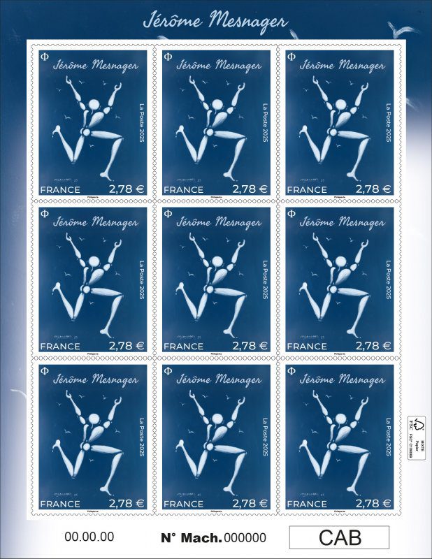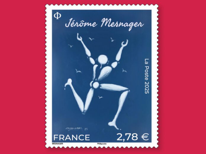 Com valor facial de € 2,78, a emissão entrou em pré-venda em 26 de setembro de 2025 e, no dia 30 de setembro de 2025, completou a distribuição, alcançando o “Carré d’encre”. Mesnager, nascido em 1961, formou-se na escola “André-Charles Boulle” e na de artes aplicadas “Duperré”; desde os primeiros anos da década de 1980 é reconhecido como figura central da expressividade urbana no país. Criado em 1983, o seu célebre “homem branco” percorreu o mundo, tendo aparecido na Grande Muralha da China, nas catacumbas de Paris e em capas de discos; mais do que uma silhueta esguia, tornou-se um referente atemporal que não envelhece, “iluminando as ruas e, em sentido mais amplo, a sociedade”.