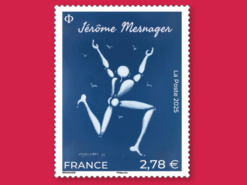 La Poste, a operadora postal da França, retomou sua série artística com um selo dedicado a Jérôme Mesnager, um dos pioneiros nacionais da arte de rua, utilizando a obra original intitulada “Grazie postino”.