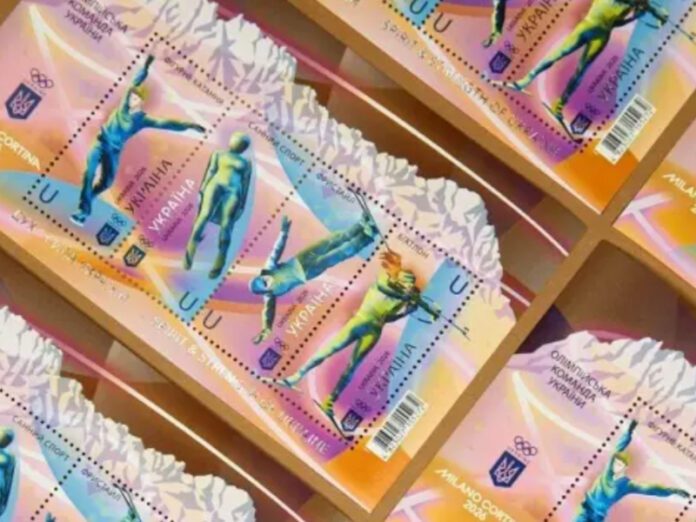 A Ucrânia, através de sua operadora postal, a Ukrposhta, marcou sua presença rumo aos Jogos de Inverno ao colocar em circulação, em 27 de janeiro de 2026, um bloco comemorativo intitulado “O espírito e a força da Ucrânia. Milano Cortina 2026”, disponível também na versão sem picote. O conjunto reúne quatro selos do tipo “U”, cada um com valor facial de 24,00 grívnias, dedicados a modalidades associadas ao programa olímpico de inverno: patinação artística, trenó, esqui acrobático e biatlo. Do ponto de vista filatélico, o apelo visual está justamente na escolha de esportes de dinâmica distinta — do gesto técnico e coreográfico da patinação à velocidade do trenó, passando pela plasticidade do esqui acrobático e pelo contraste entre resistência e precisão do biatlo. O autor do desenho é Volodymyr Taran.